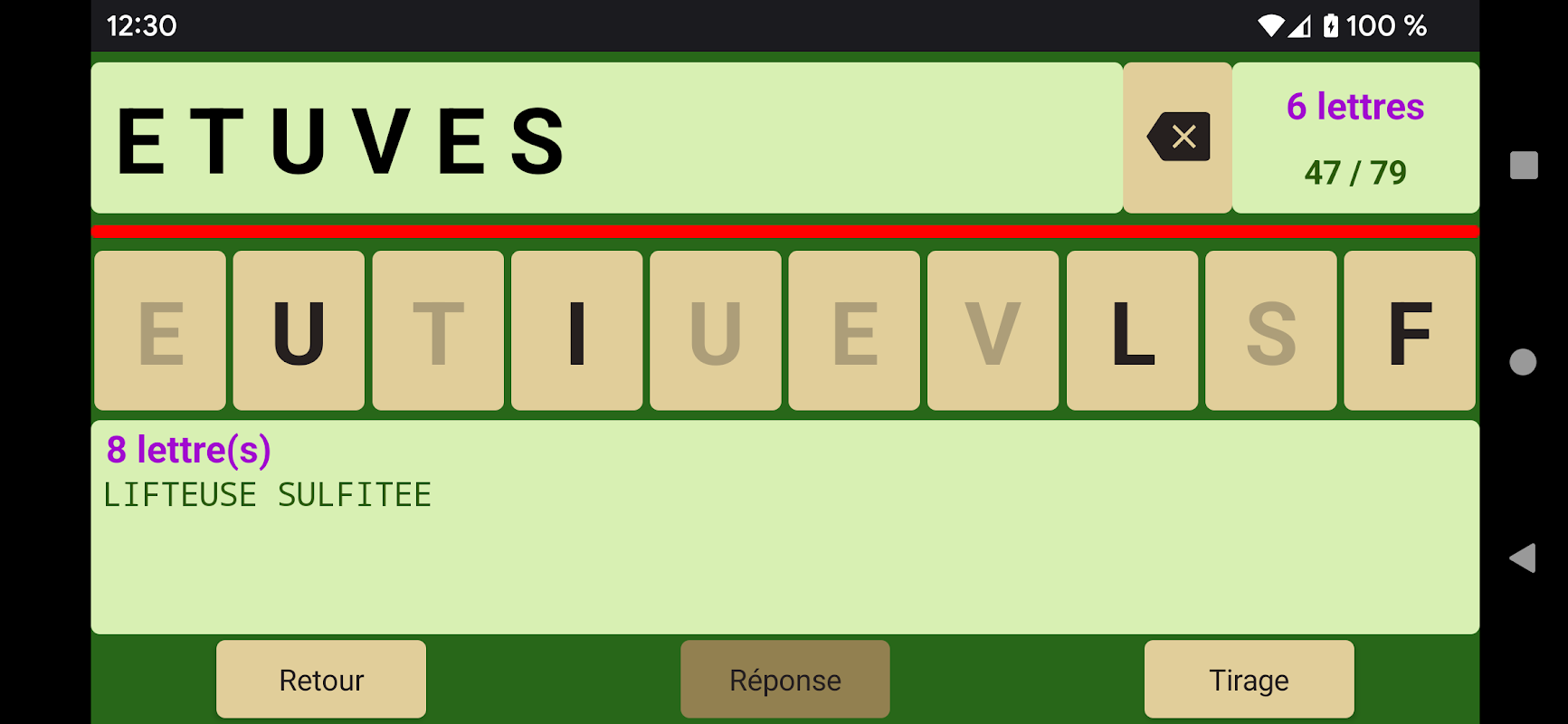 کھیل کا مقصد 10 تصادفی طور پر تیار کردہ حروف سے سب سے لمبا لفظ تلاش کرنا ہے۔ مربوط فعل قبول کیے جاتے ہیں۔