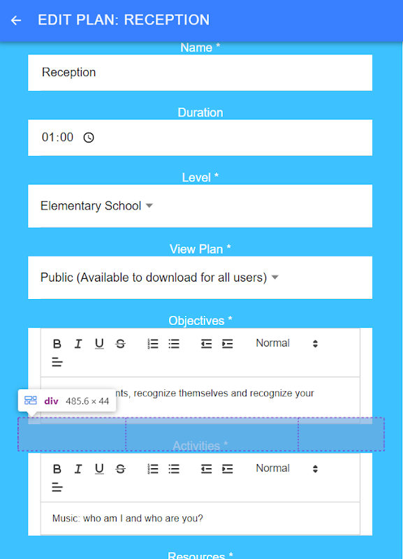 ایپلیکیشن آپ کو اپنے نام، اسکول اور کلاس کے ساتھ کلاس روم میں استعمال کے لیے تیار سبق کا منصوبہ ڈاؤن لوڈ کرنے کی اجازت دیتی ہے۔