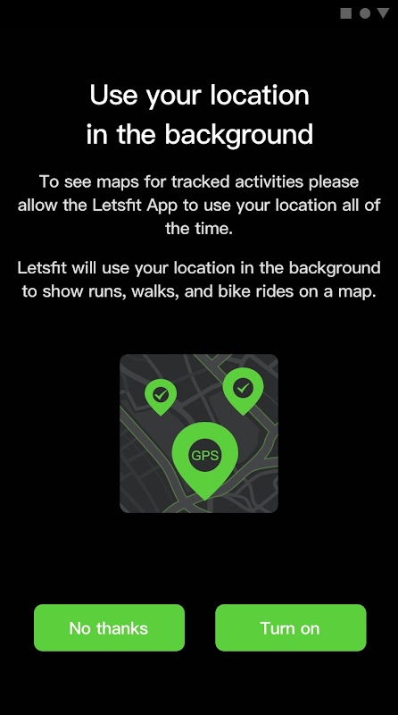 براہ کرم نوٹ کریں: جب آپ ورزش کرتے ہیں تو Letsfit آپ کے مقام کو پس منظر میں استعمال کرے گا۔ یہ آپ کی سرگرمی کا نقشہ تیار کرے گا اور ورزش کا درست ڈیٹا فراہم کرے گا۔