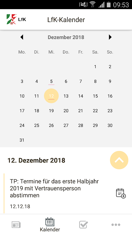 ایل ایف کے کیلنڈر میں یاد دہانی کے ساتھ آپ ہمیشہ متعلقہ تاریخیں اور آخری تاریخ رکھتے ہیں۔