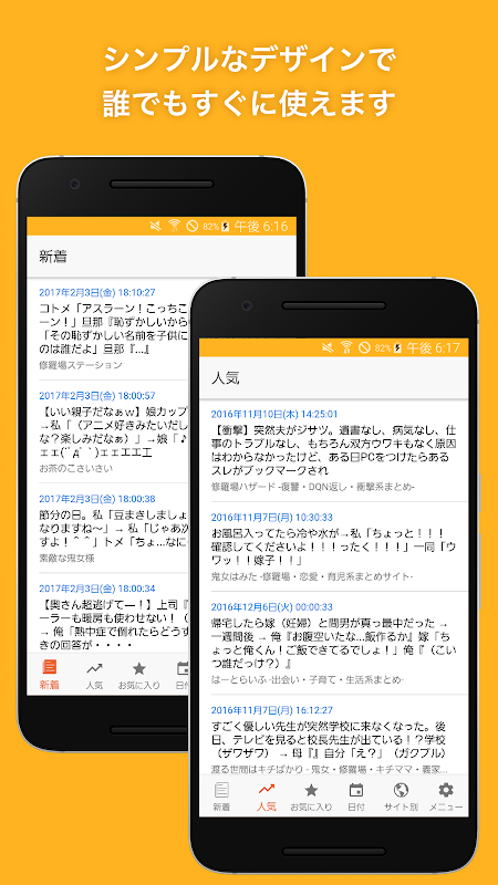 「新着」と「人気」リストで最新の記事や話題の記事を欠かさずチェック!