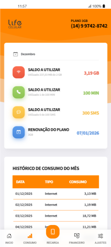 ایپ آپ کے لیے، لائف سیلولر صارف، ریچارج سروسز تک رسائی حاصل کرنے، اپنا بیلنس (آواز، انٹرنیٹ، اور ڈیٹا) چیک کرنے کے لیے ہے، اور بہت کچھ، جلدی، آسانی سے، اور جب بھی آپ چاہیں۔