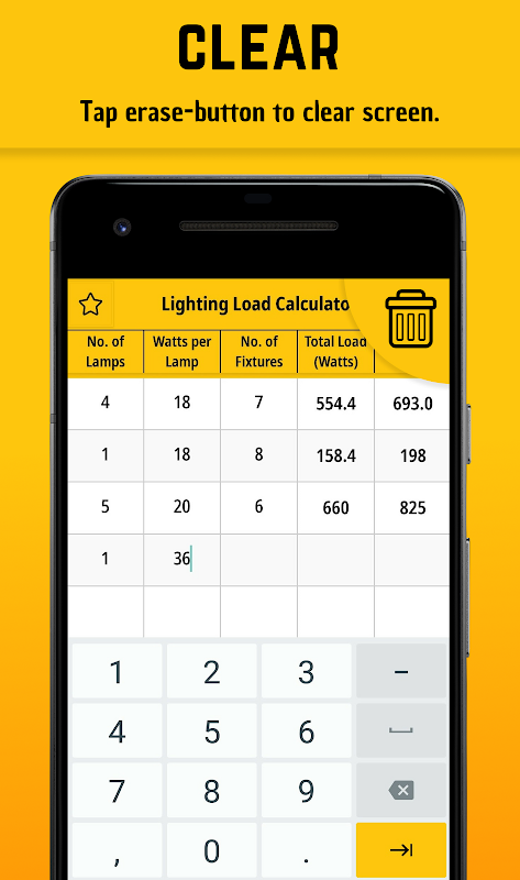 • Just input No. of Lamps, Watts/Lamp and No. of Fixtures.
