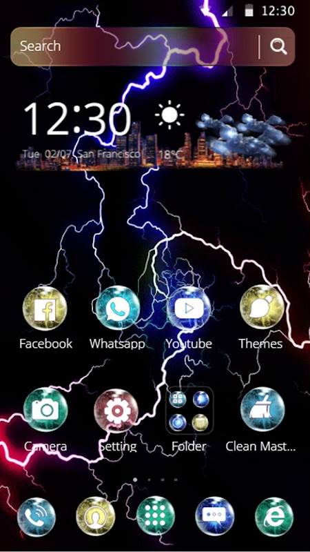 Get Lightning Theme to have thunder storm wallpaper and transparent neon icon