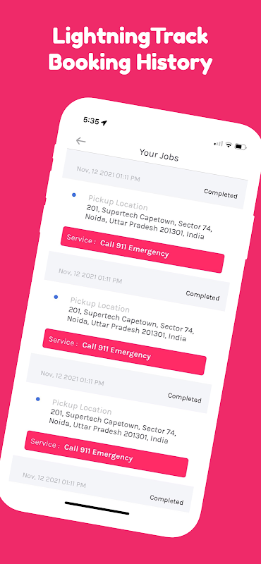 لائٹننگ ٹریک استعمال کرنے کے لیے، بس ایپ ڈاؤن لوڈ کریں، سائن اپ کریں اور اپنی ضرورت کی خدمت منتخب کریں، اس کے بعد آپ اپنے علاقے میں دستیاب فراہم کنندگان کی فہرست دیکھ سکیں گے۔ ایک بار جب آپ نے فراہم کنندہ کا انتخاب کیا ہے۔ آپ حقیقی وقت میں ان کے مقام کو ٹریک کرنے کے قابل ہو جائیں گے اور دیکھیں گے کہ انہیں پہنچنے میں کتنا وقت لگے گا۔