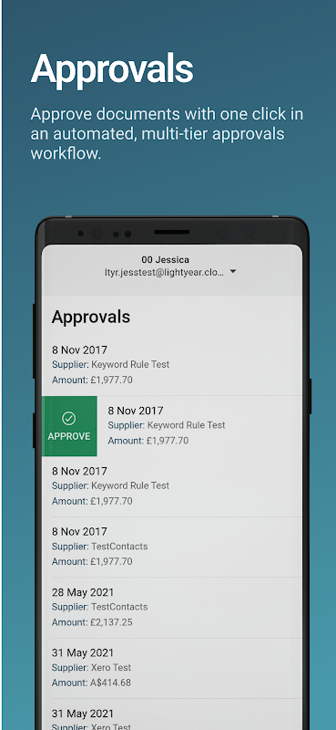 لائٹ ایئر موبائل ایپ کو خریداری کے آرڈر بنانے، بلوں، رسیدوں اور کریڈٹ نوٹوں کو اسکین کرنے اور چلتے پھرتے بلوں کو منظور کرنے کے لیے ڈیزائن کیا گیا ہے۔