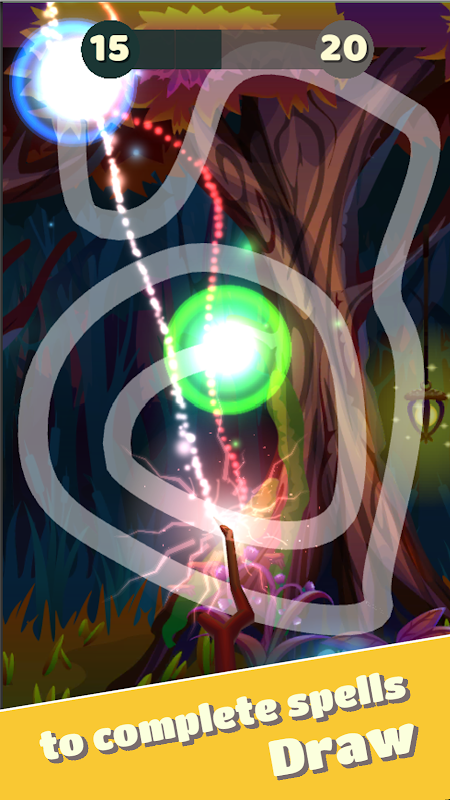 Track the line quickly and draw magic, unite glowing balls to complete the spell