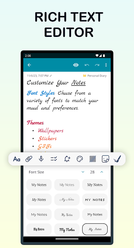 • تخصیص پذیر فونٹس: مختلف فونٹ اختیارات کے ساتھ اپنے نوٹس کو تخصیص دیں