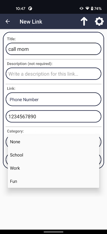 لنک بورڈ سے ملو ، ایک سادہ اور بدیہی ایپ جو آپ کو ویب سائٹس ، ای میل پتے ، مقامات اور فون نمبروں کے لنکس کو بعد میں محفوظ کرنے دیتی ہے! ہر لنک ایک کارڈ کی شکل میں ظاہر ہوتا ہے جسے عنوان ، تفصیل اور زمرہ تفویض کیا جا سکتا ہے۔ کسی لنک کو دیکھنے کے لیے صرف ایک کارڈ کو تھپتھپائیں ، اسے شیئر کرنے کے لیے تھامیں ، اور اسے حذف کرنے کے لیے سوائپ کریں!