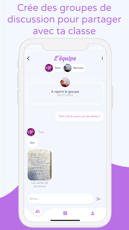Tu peux aussi créer des groupes de discussion pour partager des cours et des informations avec les membres de ta classe.