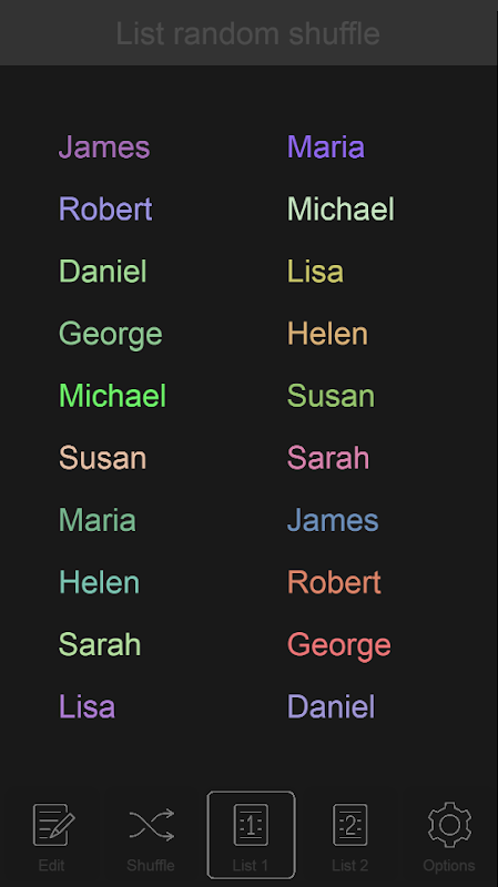 کاپی اور پیسٹ آپشن کے ساتھ لسٹ میکر اور رینڈمائزر ایپ کو شفل کریں۔