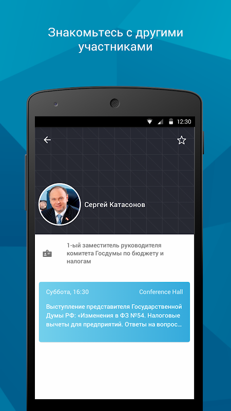 - составить собственную программу и получать оповещения о начале избранных докладов;
