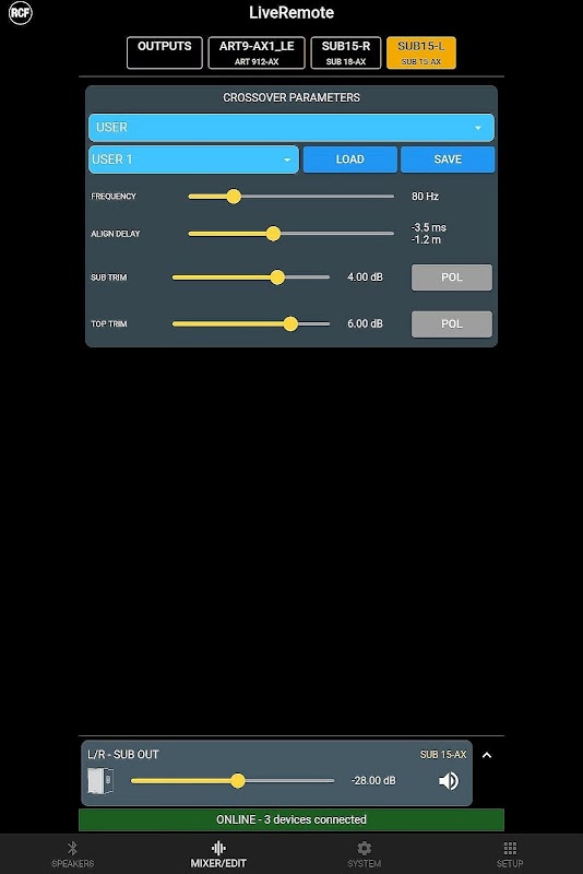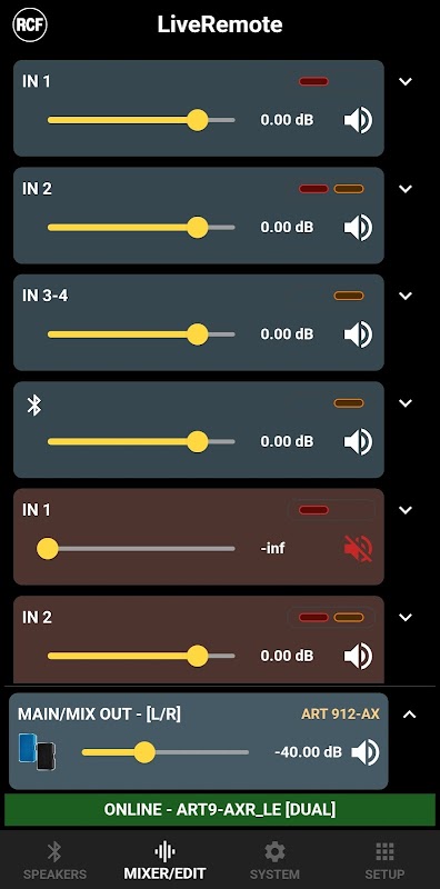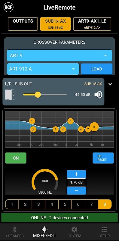RCF LiveRemote ایپ کئی اسپیکرز اور سب ووفرز کے مکمل کنٹرول کی اجازت دیتی ہے۔