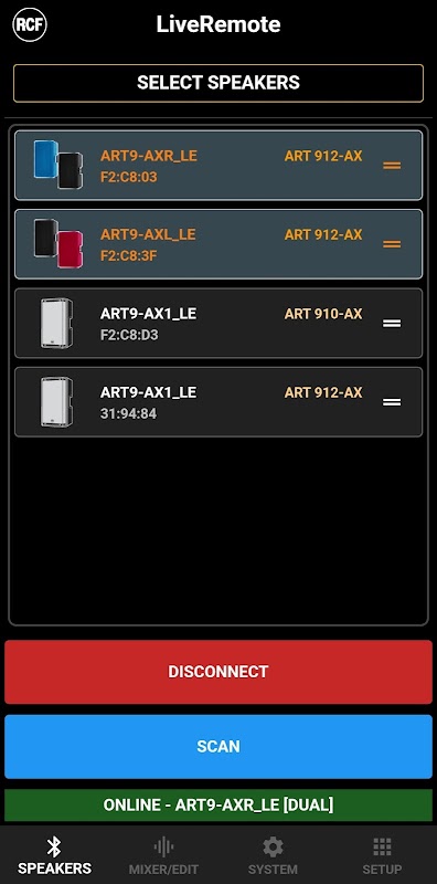 RCF LiveRemote App بلوٹوتھ کے ذریعے آپ کے اسمارٹ فون سے کئی ایکٹو اسپیکرز اور سب ووفرز کے مکمل کنٹرول کی اجازت دیتا ہے، اور اسے اضافی اسپیکر ماڈلز کے ریموٹ کنٹرول کو شامل کرنے کے لیے اپ ڈیٹ کیا گیا ہے۔
