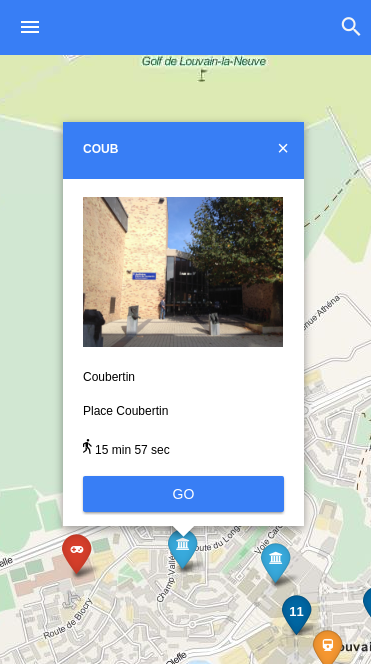 Interactive maps for finding locations in Louvain-la-Neuve (city and campus)