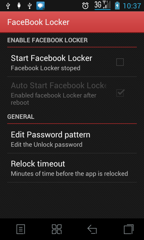 After enable Lock for FaceBook, there will be lock pattern protection when opening FaceBook.