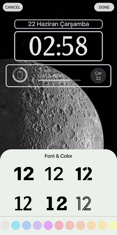 + وقت، فونٹ کا سائز اور رنگ تبدیل کریں۔