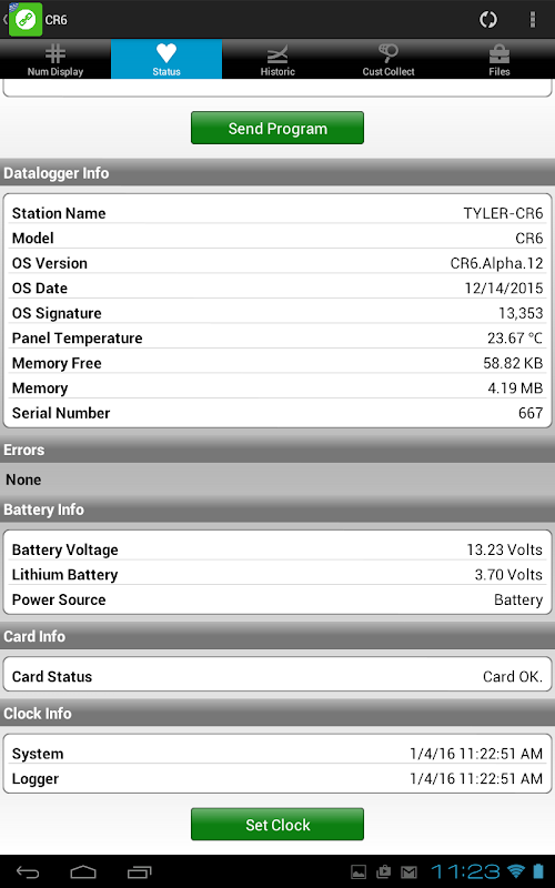 LoggerNet Mobile Connect lets you access your LoggerNet network using a mobile device. The app can be used to check LoggerNet and datalogger status as well as view and collect data from individual dataloggers. Field maintenance tasks such as setting the clock, sending programs, and changing station settings (including variables) are also supported.