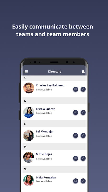 • View directory of employees/members registered within your company information