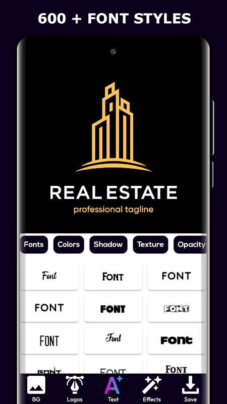 لوگو میکر ایپ میں وہ تمام خصوصیات شامل ہیں جن کی آپ کو متاثر کن لوگو بنانے کی ضرورت ہے۔ ٹیکسٹ ایڈیٹنگ سے لے کر بیک گراؤنڈ ایڈجسٹمنٹ، شکل کی تخصیص، 3D اسٹائل، اور بہت کچھ۔