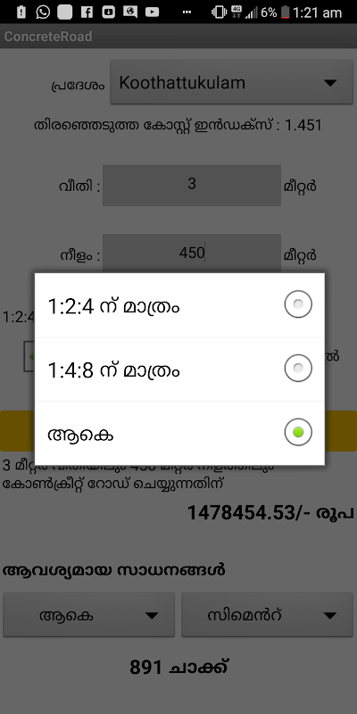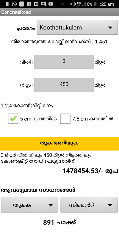 To calculate the total amount & materials for a given width and length of road