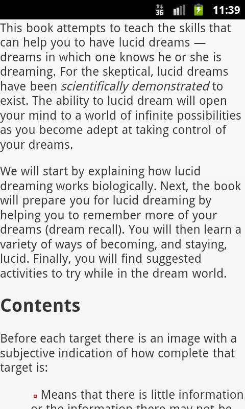 We will start by explaining how lucid dreaming works biologically. Next, the book will prepare you for lucid dreaming by helping you to remember more of your dreams (dream recall). You will then learn a variety of ways of becoming, and staying, lucid. Finally, you will find suggested activities to try while in the dream world.