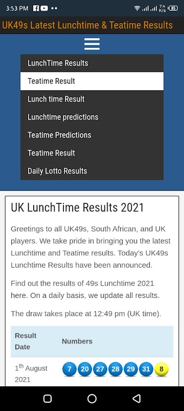 UK49s Lunchtime Results.This page will be updated with a list of the winning numbers for all UK49s Lunchtime draws from shortly after the winners are chosen. Those interested in historical draws can do so further down the page. Today’s lunchtime result appears above them.