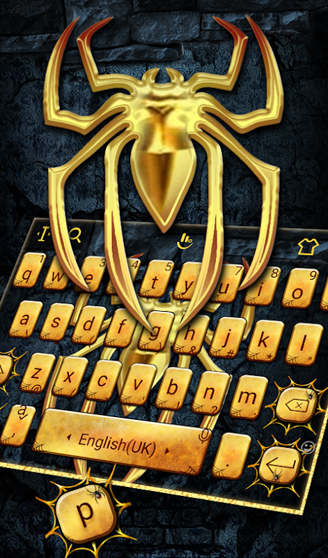 Lustrous Golden Spider Keyboard Theme provides ravishing wallpaper and keypad