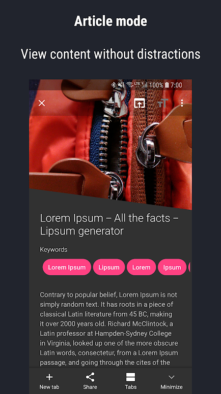 🔵 Article Mode - Grabs only the content of web pages and presents them in a neat interface.