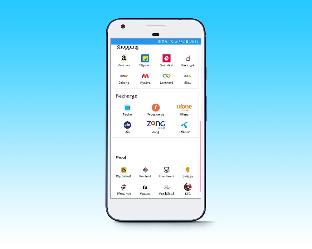 • Top Sites, Utilities, Shopping, Recharge and Food