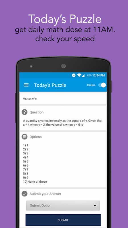 M4maths is an android application for maths lovers who loves solving challenging maths problems on daily basis. But the thing that makes M4maths special is the number of questions it provides to prepare for pre-placement tests of numerous well-known companies, entrance exams, government job exams and questions on computer programming languages. The app include most recent questions of logical reasoning, numerical ability, verbal ability, quantitative and aptitude asked in the exams which are submitted by the users. We here at m4maths try to get as many questions as possible in order to help other fellow students.
