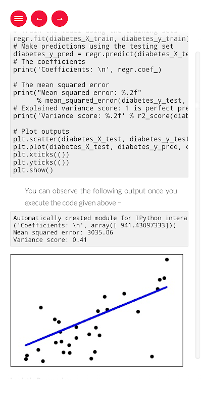 یہ مفت ایپ آپ کو مشین لرننگ پروگرامنگ لینگویج کو صحیح طریقے سے سمجھنے میں مدد دے گی اور مشین لرننگ کا استعمال کرتے ہوئے کوڈنگ شروع کرنے کا طریقہ سکھائے گی۔ یہاں ہم تقریباً تمام حوالوں کا احاطہ کر رہے ہیں۔ ترتیب وار ٹیوٹوریل آپ کو بنیادی سے ایڈوانس لیول تک بتاتا ہے۔