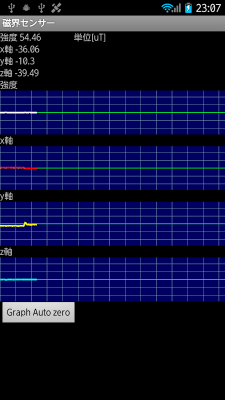 スマートフォンの磁気センサーを使用したアプリです。 端末周辺の磁気を測定することができます。 金属探知機にも使用可能です。
