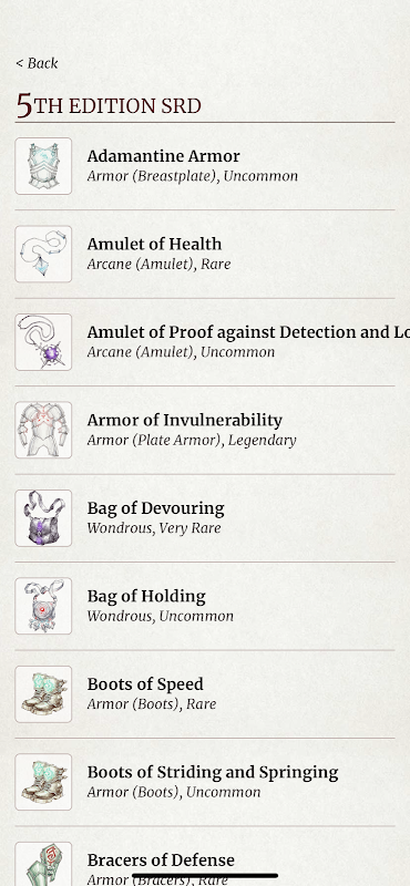 ایپ 5e مادوں کے ساتھ مطابقت رکھتی ہے اور یہاں تک کہ اوپن گیمنگ لائسنس کے ذریعہ آپ کی پسندیدہ جادو کی کچھ چیزیں سیدھے ڈی اینڈ ڈی سسٹمز ریفرنس دستاویز (ایس آر ڈی) سے کھینچتی ہے۔