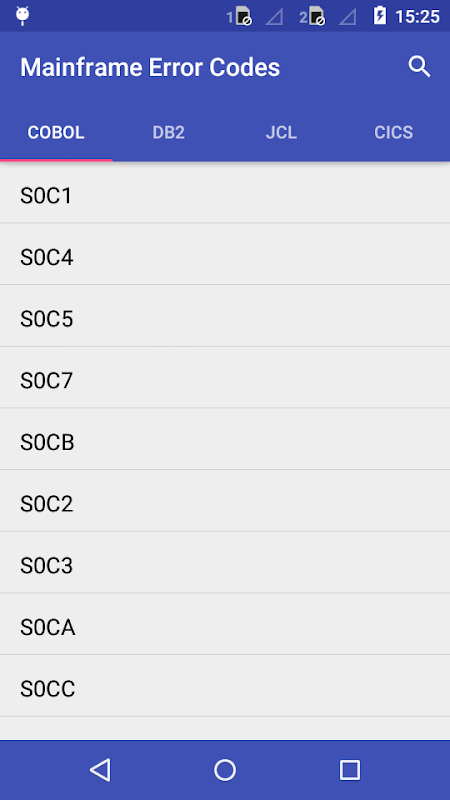 This application contains frequently occurring error codes in COBOL and DB2. The application provides the user with the explanation and proposed solution for the error codes. Google voice functionality is also available for the application.