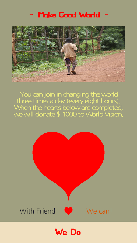 When people are gathered and the heart of the app is completed, 'SARAM' company will donate $ 1000 to 'World Vision'.