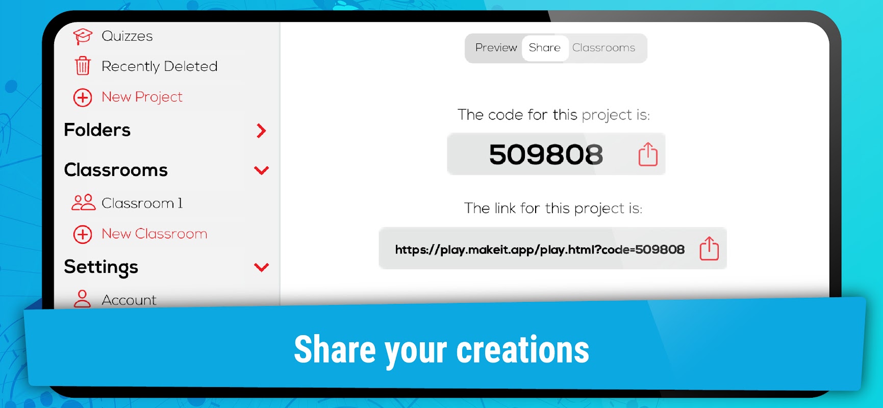 صرف چند سیکنڈ میں کھیل ، کوئز ، سرگرمیاں اور کہانیاں بنائیں! جہاں چاہیں اپنی تخلیقات کو کھیلیں اور ان کا اشتراک کریں۔ Make یہ اساتذہ ، طلباء ، اسکولوں ، معلمین اور پیشہ ور افراد کے لئے بہترین ایپ ہے۔