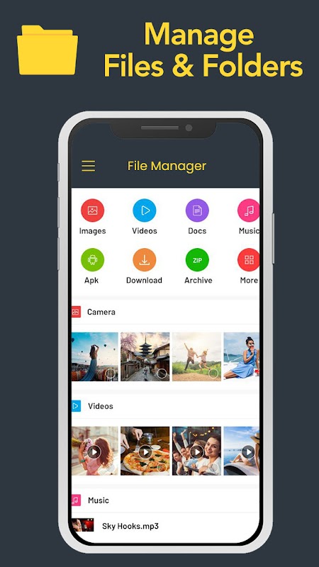 - اپنے اسمارٹ فون ، SD کارڈ ، یا USB ڈرائیو پر محفوظ فائلوں کو آسانی سے براؤز کریں اور ان کا نظم کریں۔
