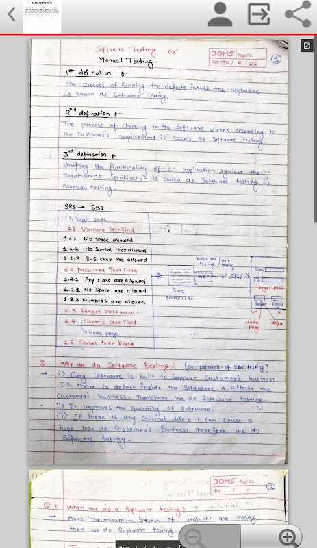 دستی ٹیسٹنگ کورس کے ہاتھ سے لکھے ہوئے نوٹ