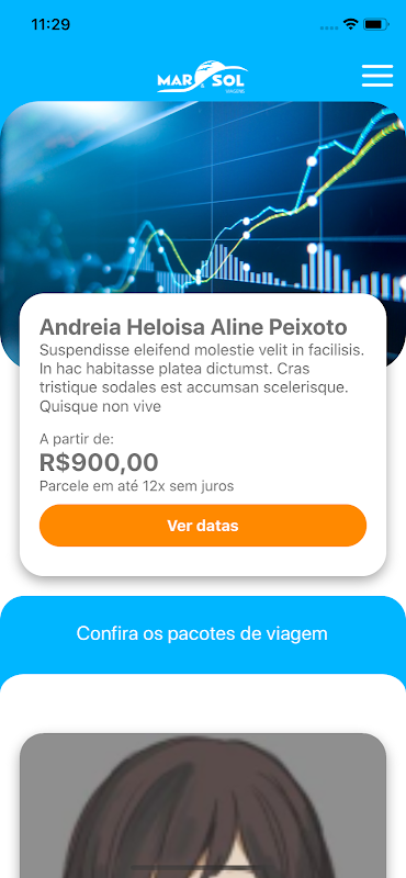Aplicativo Mar & Sol para compra de passagens.