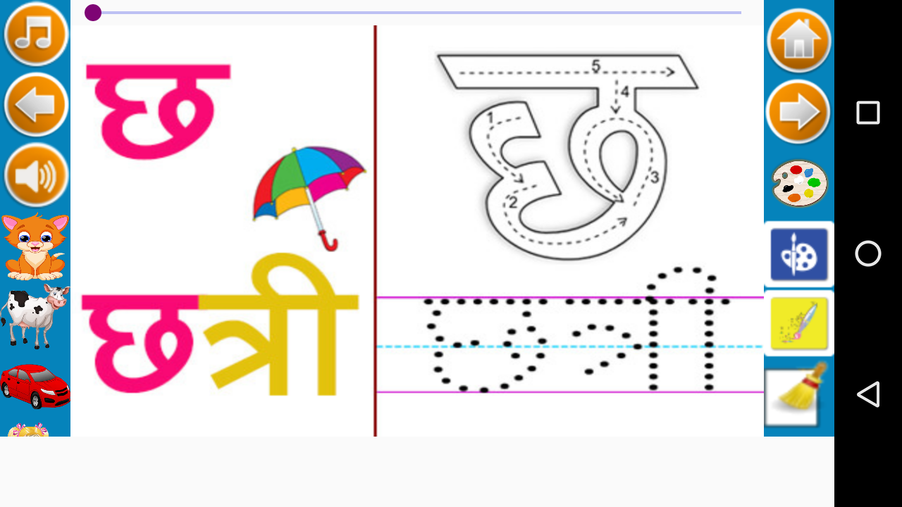 प्राण्यांचे, वाहनांचे आणि खेळण्याचे हि आवाज दिलेले आहेत. त्यामुळे मुले लवकरात लवकर आणि मज्जेत अक्षर शिकू शकतात. तसेच हे अॅप आपण सोशियल मीडियामधून शेअर हि करू शकता.