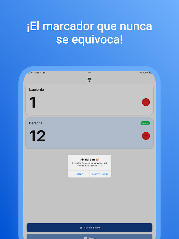 ہماری درخواست کے ساتھ، پوائنٹس کی گنتی کھونے کو بھول جائیں۔ خاص طور پر ایکواڈور والی بال کے شائقین کے لیے ڈیزائن کیا گیا، یہ سادہ اور درست اسکور بورڈ آپ کو اس بات پر توجہ مرکوز کرنے میں مدد کرے گا کہ سب سے اہم کیا ہے: گیم جیتنا!