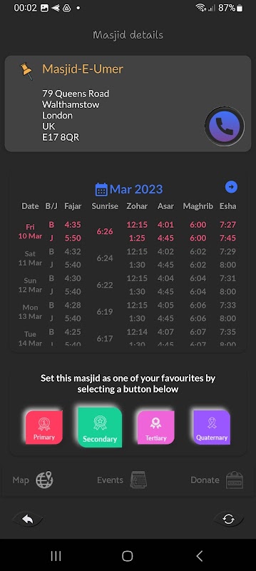 آپ کے پاس 3 اضافی مساجد تک داخل کرنے کی صلاحیت بھی ہے۔ اس طرح آپ ان مساجد کا ماہانہ ٹائم ٹیبل بھی چیک کر سکتے ہیں۔