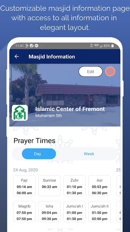 یہ اطلاق آپ کی مقامی مسجد کے لئے اقامہ کے اوقات کے ساتھ ساتھ نماز کے آخری وقت فراہم کرے گا۔ مسجدی آپ کے موبائل ڈیوائس پر آپ کے مسجد کے اوقات کی فہرست دیتی ہے ، اس سے آپ کو صلا Sala اور اقامہ کے جدید وقت تک رسائی مل جاتی ہے۔