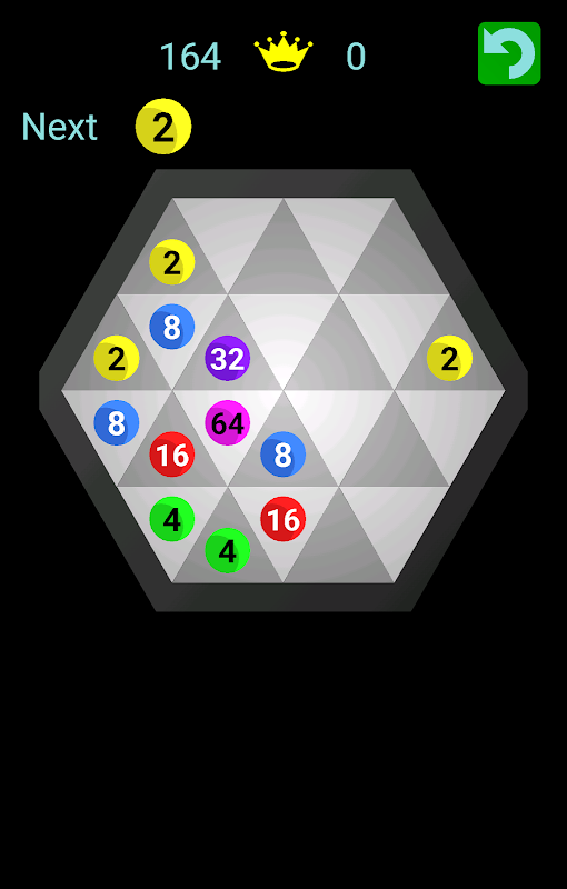 Two balls with the same one number can be merged to a ball with the two numbers,