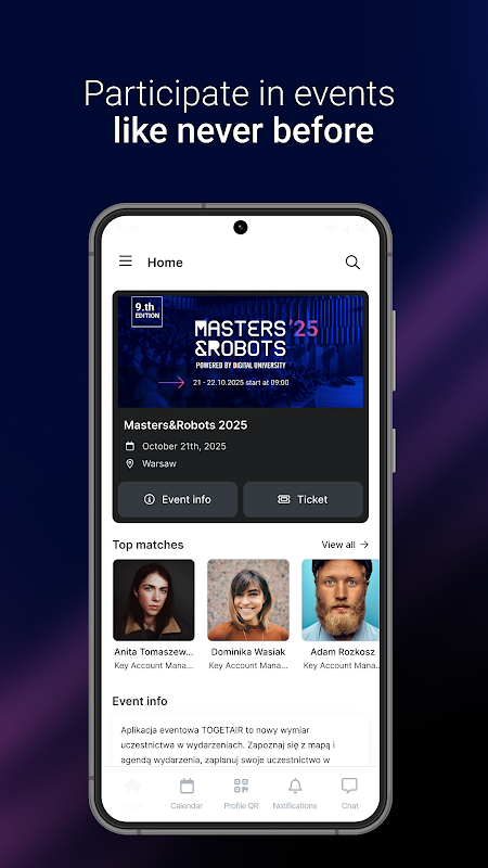 ماسٹرز اینڈ روبوٹس ایونٹ ایپ ایونٹ میں شرکت کی ایک نئی جہت پیش کرتی ہے۔ ایونٹ کا ایجنڈا دریافت کریں اور ذاتی نوعیت کے کیلنڈر کے ذریعے ڈسکشن پینلز میں اپنی حاضری کا منصوبہ بنائیں۔ مقررین اور سپانسرز کے پروفائلز دیکھ کر ان کے بارے میں مزید جانیں۔ ہم خیال افراد کے ساتھ جڑیں اور AI سے چلنے والی سفارشات کی بنیاد پر دلچسپ مواقع دریافت کریں۔ تقرریوں کا شیڈول بنائیں اور اپنے ایونٹ کے تجربے سے زیادہ سے زیادہ فائدہ اٹھائیں۔