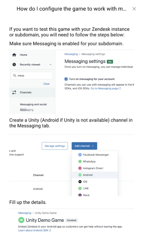 Zendesk SDK for Unity کو ایک نئے ڈیمو گیم کے ساتھ استعمال کرنے کا طریقہ سیکھنا آسان اور تفریحی ہے جس میں پیغام رسانی کی صلاحیتیں مربوط اور استعمال کے لیے تیار ہیں۔
