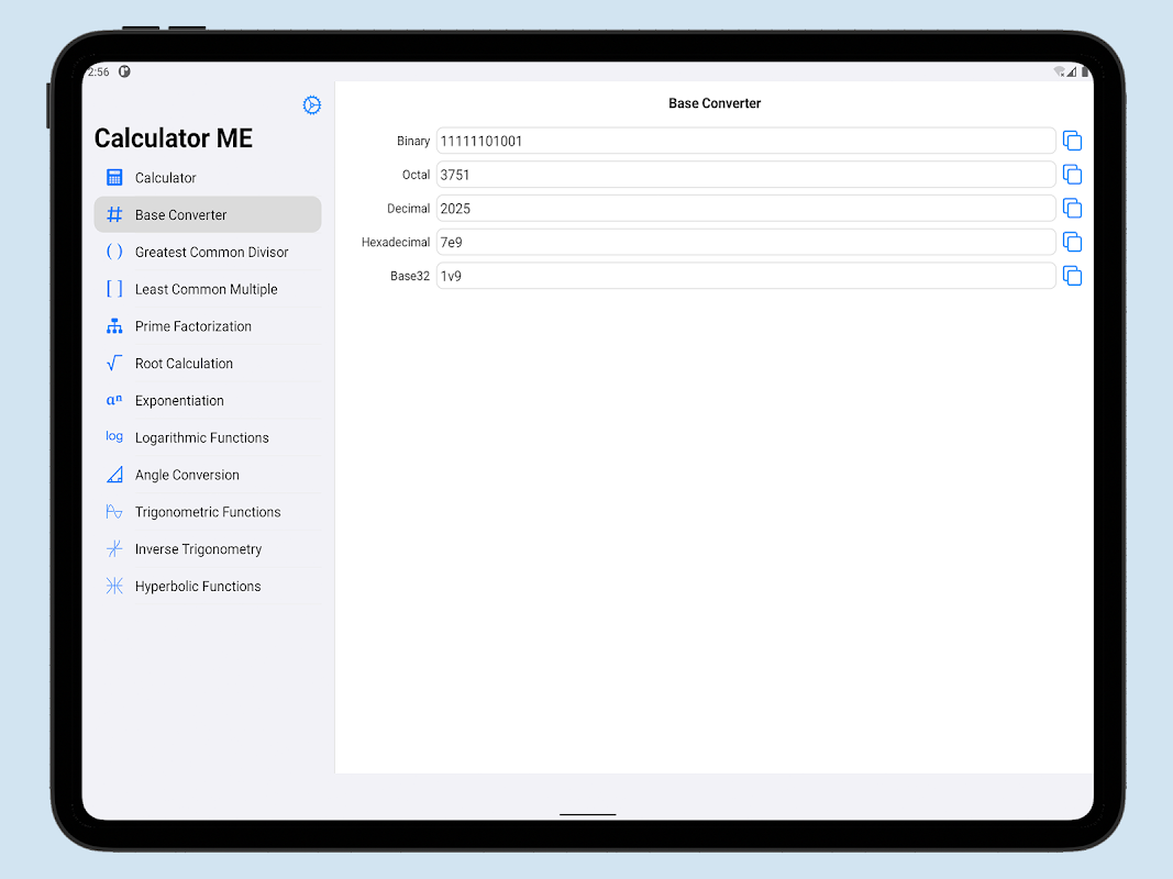 کیلکولیٹر ME بنیادی ریاضی سے لے کر جدید فنکشنز تک ہر چیز کو آسانی سے ہینڈل کرتا ہے، بشمول بنیادی تبدیلی، مثلثیات، لوگارتھمز، اور بہت کچھ۔