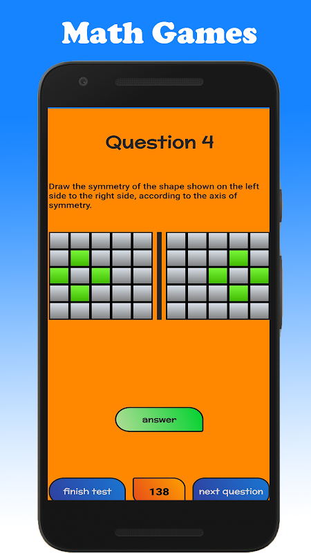 - Number Games: There are several other sections rather than 4 operation questions. Number Serials, Greater or Lesser Questions, Symmetry Test in Coordinate Axis, Odd or Even Numbers.