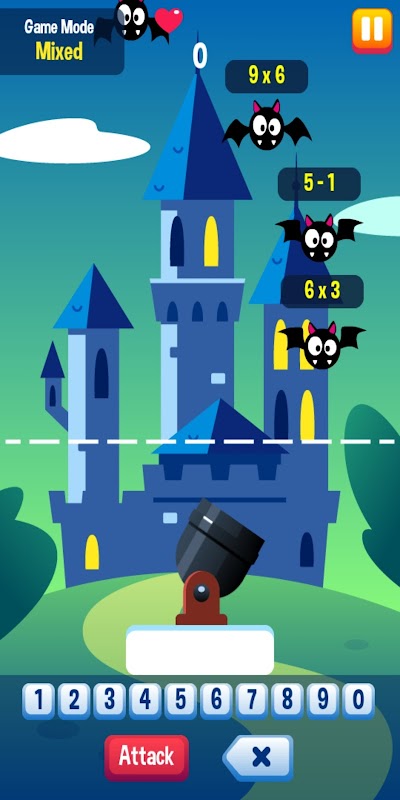 Game categories: Addition, subtraction, multiplication, division, exponentiation, square root